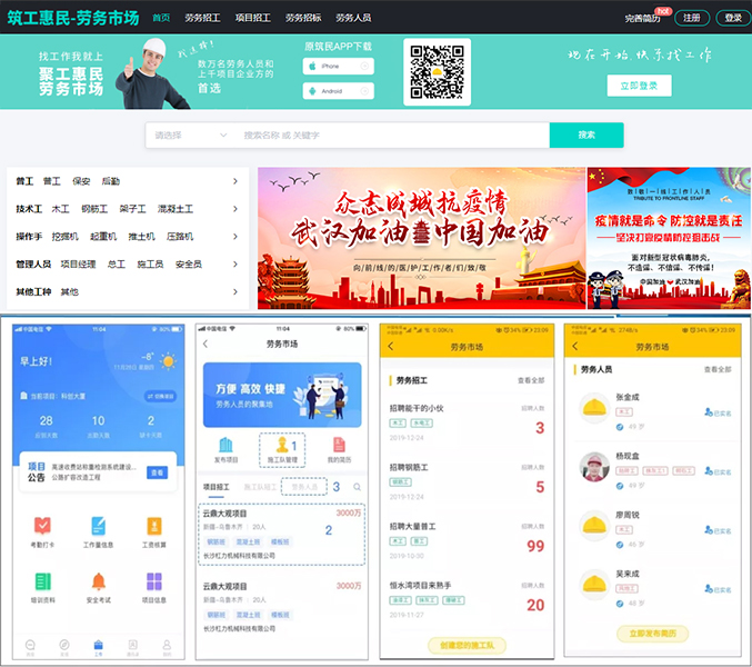 截止到2019年底,公司搭建的“聚工惠民”綜合勞務管理服務平台,上遊施工企業約1200家,下遊涉及各行業建築工人約4萬人。戰勝疫情!新疆建築用工直通車全力免費服務廣大建築用工企業、農民工兄弟!通過(guò)建築用工直通車,項目招工人,工人找工作將(jiāng)不再是難題。