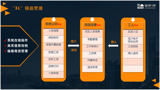 該系統軟件幫助建築勞務公司解決全流程業務管理,實現項目全過(guò)程管理的數據标準化、管控可視化、業務一體化。可實現線上實名認證、勞動合同簽署、保險購買;一鍵操作工資批量跨行發(fā)放、回單打印;智能(néng)運算彙集個稅批量申報等功能(néng)。以其獨特的數據化思維方式突破了傳統勞務公司業務管理的困境。系統數據大腦幫助勞務公司使管理更便捷、更高效、更安全。